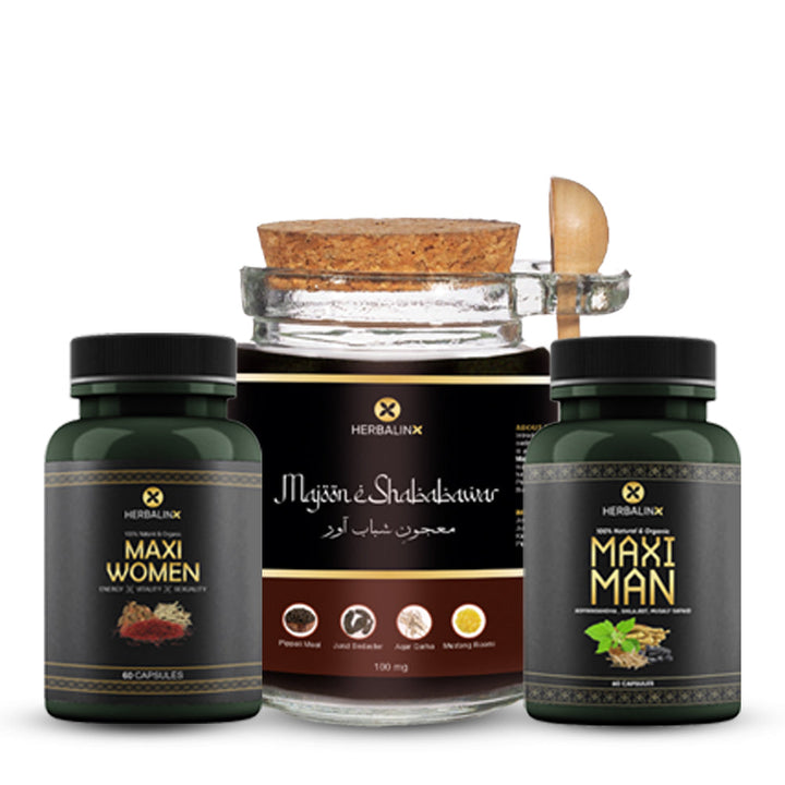 Achieve peak health and vitality with our exclusive Pack of 3 Bundle, featuring Maxi Man, Maxi Woman, and Majoon Shababawar! This ultimate trio is designed to energize, rejuvenate, and promote overall wellness for both men and women. Whether it’s boosting stamina, enhancing balance, or revitalizing your energy, this bundle has everything you need to live life at your fullest. Triple the care, triple the benefits – grab this all-in-one wellness package today and embrace a healthier, more vibrant lifestyle!